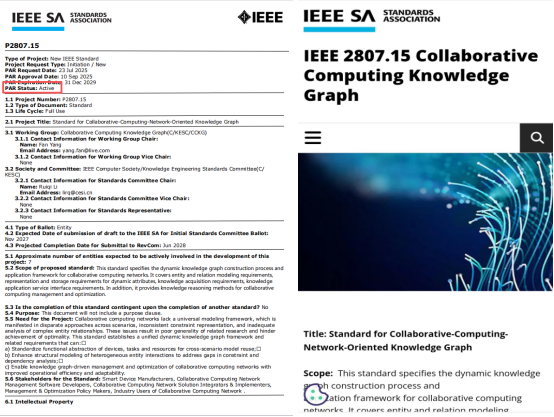 牵头,联合中国电子标准化研究院、清华大学、四川大学及联想集团等单位共同发起的IEEE国际技术标准《面向协同计算网络的知识图谱标准》(Standard for Collaborative-Computing-Network-Oriented Knowledge Graph),成功通过IEEE标准协会(IEEE SA)审批正式立项,项目编号为IEEE P2807.15。这一重要成果标志着风月同天